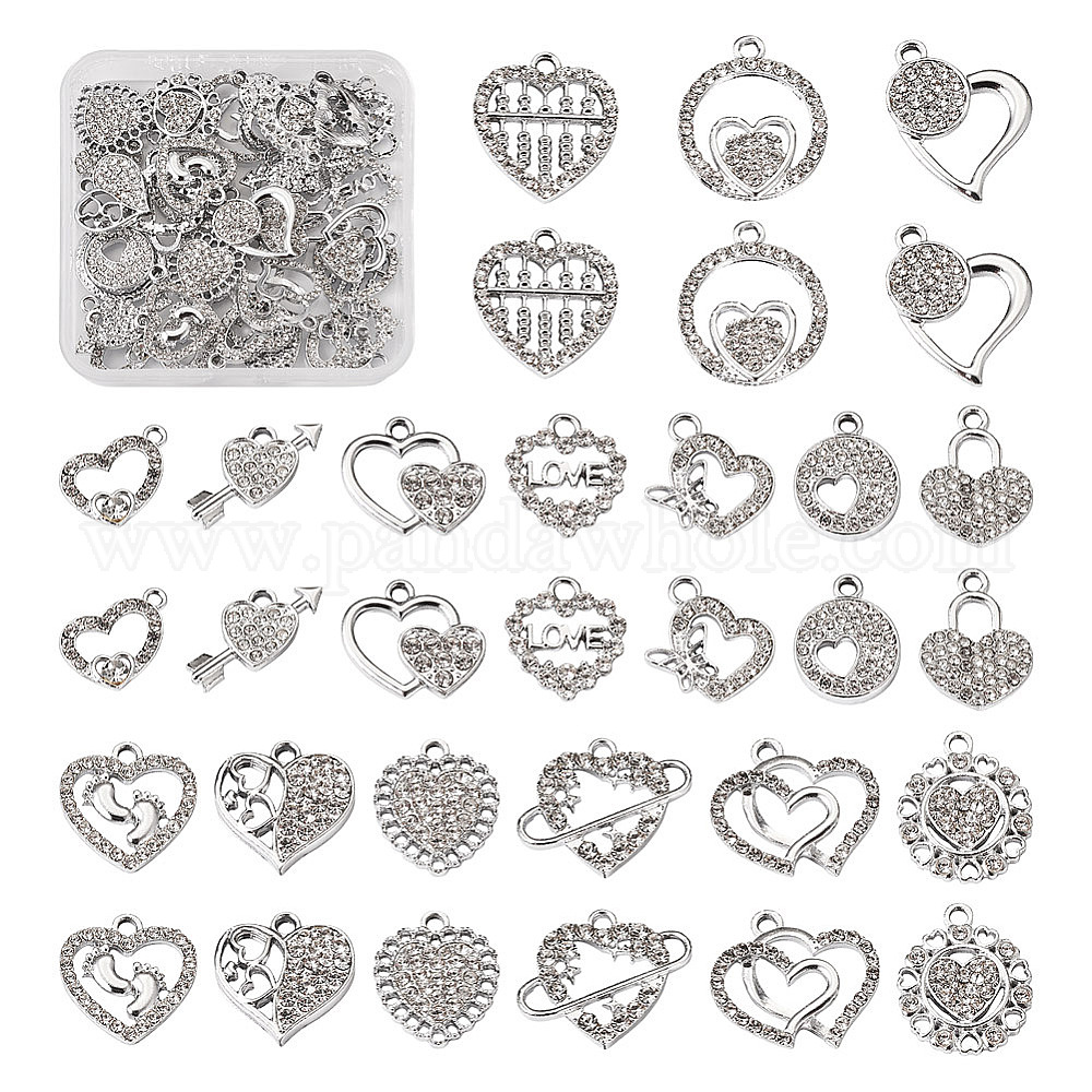 32шт 16 подвески со стразами в стиле сплава, сердце прелести, на день Святого Валентина