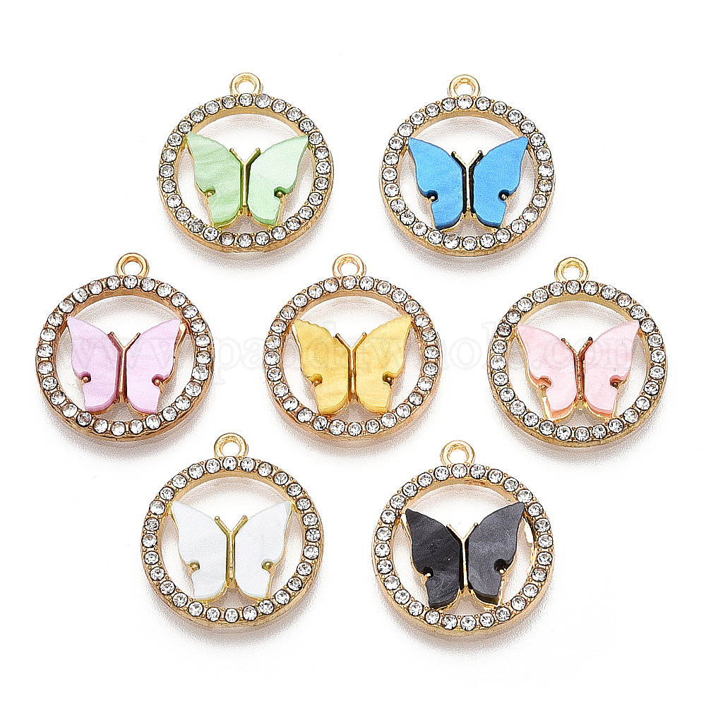 Подвески из сплава , с кристаллами горного хрусталя и акрила, кольцо с подвеской в виде бабочки, золотой свет, без кадмия, без никеля и без свинца