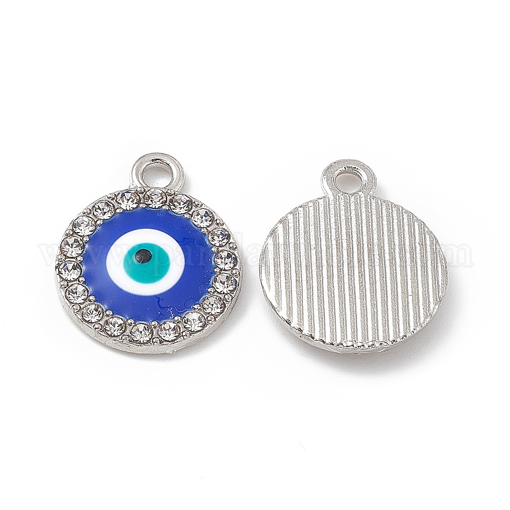 • Платина Сплава кристалла горный хрусталь подвески, эмалью сглаза, плоские круглые прелести, платина, 17.5x14x2 мм, отверстие : 2 мм