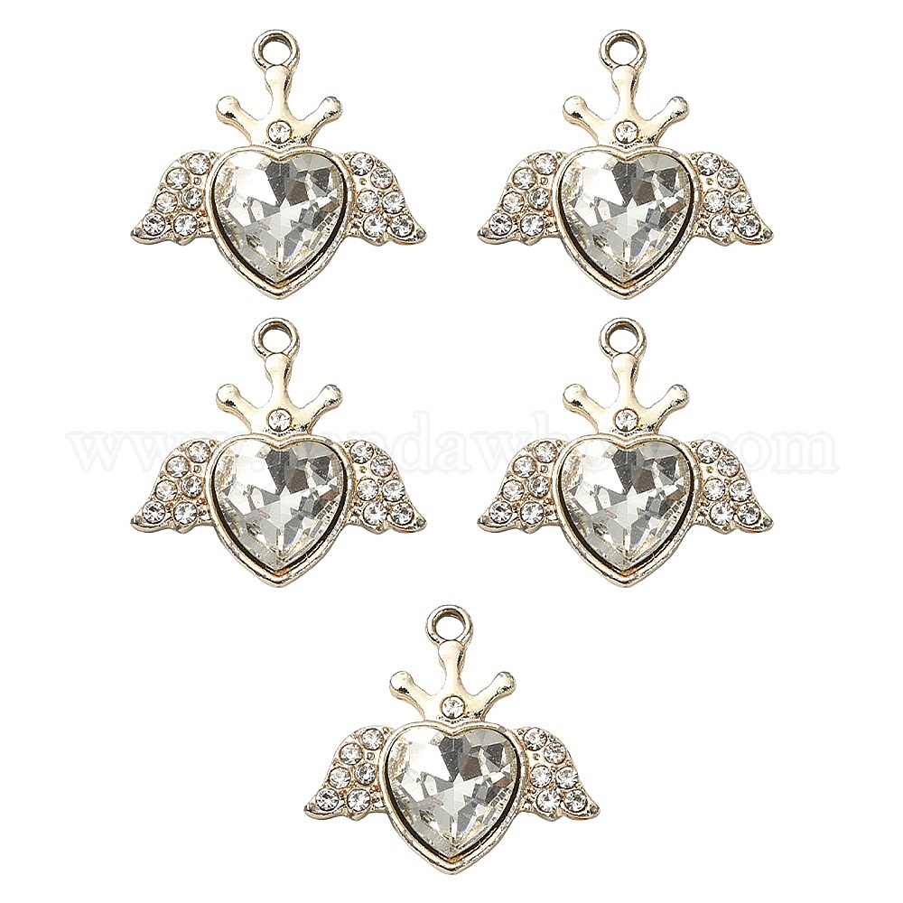 Подвески из сплава и страза, светло-золотистое сердце с подвесками в виде крыльев