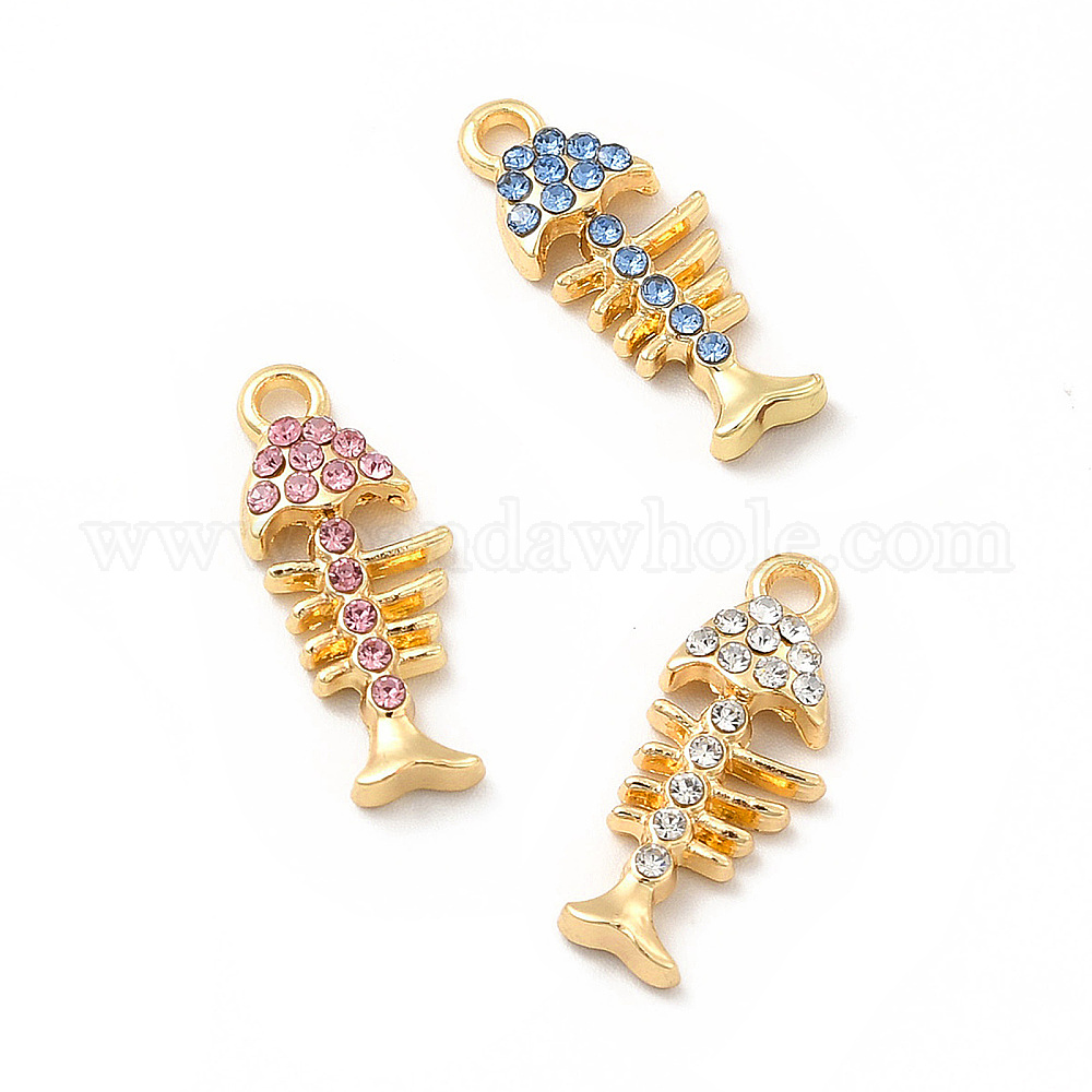 Подвески со стразами из экологически чистого сплава, очарование рыбьей кости