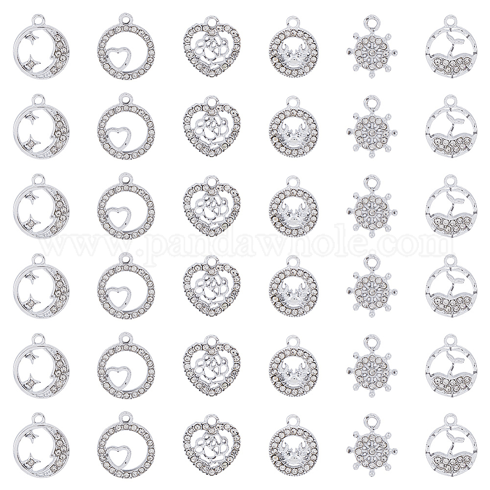 36шт 6 стиль сплава стразы подвески, плоский круглый с рыбьим хвостом и сердцем и крабом и сердцем и луной и шлемом