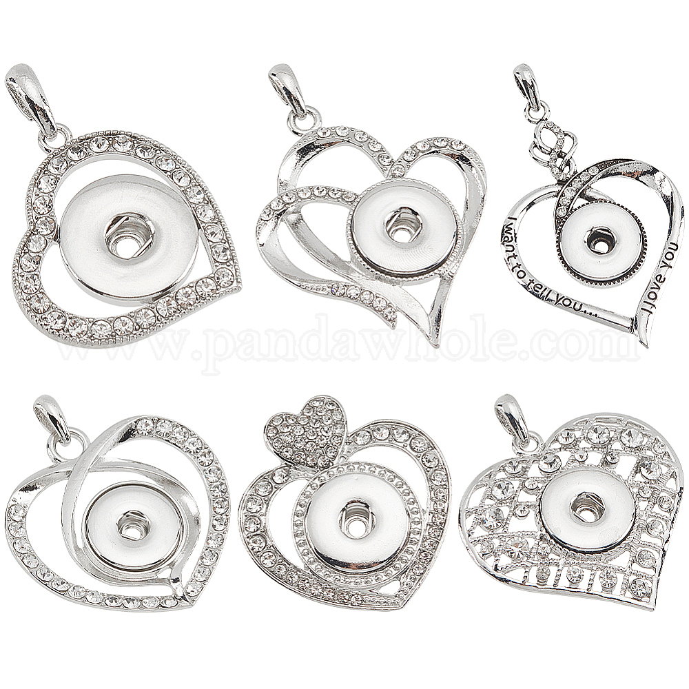 6 шт 6 стиль сердце сплав горный хрусталь подвеска защелкивающееся основание большие подвески, для изготовления ювелирных изделий со сменными подвесками (02HE3C)
