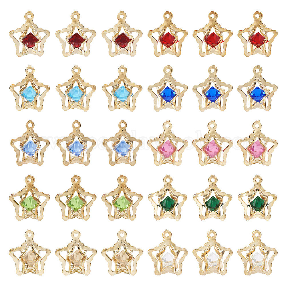 50шт 10 цвета подвески со стразами, с выводами света золота железа, звезды прелести