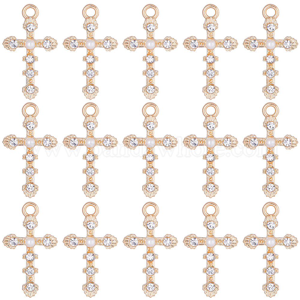 30подвески со стразами из сплава, с пластиковой имитацией жемчуга бусинами, крест прелести