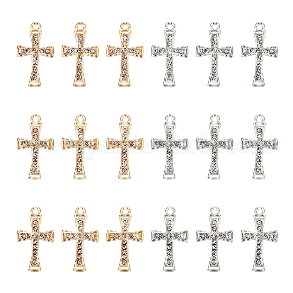 • Платиновый & Золотой 60шт. 2 цвета сплава с подвесками из хрустальных страз, крест прелести, платиной и золотом, 26.5x15x2 мм, отверстие : 1.8 мм, 30 ПК / цветов