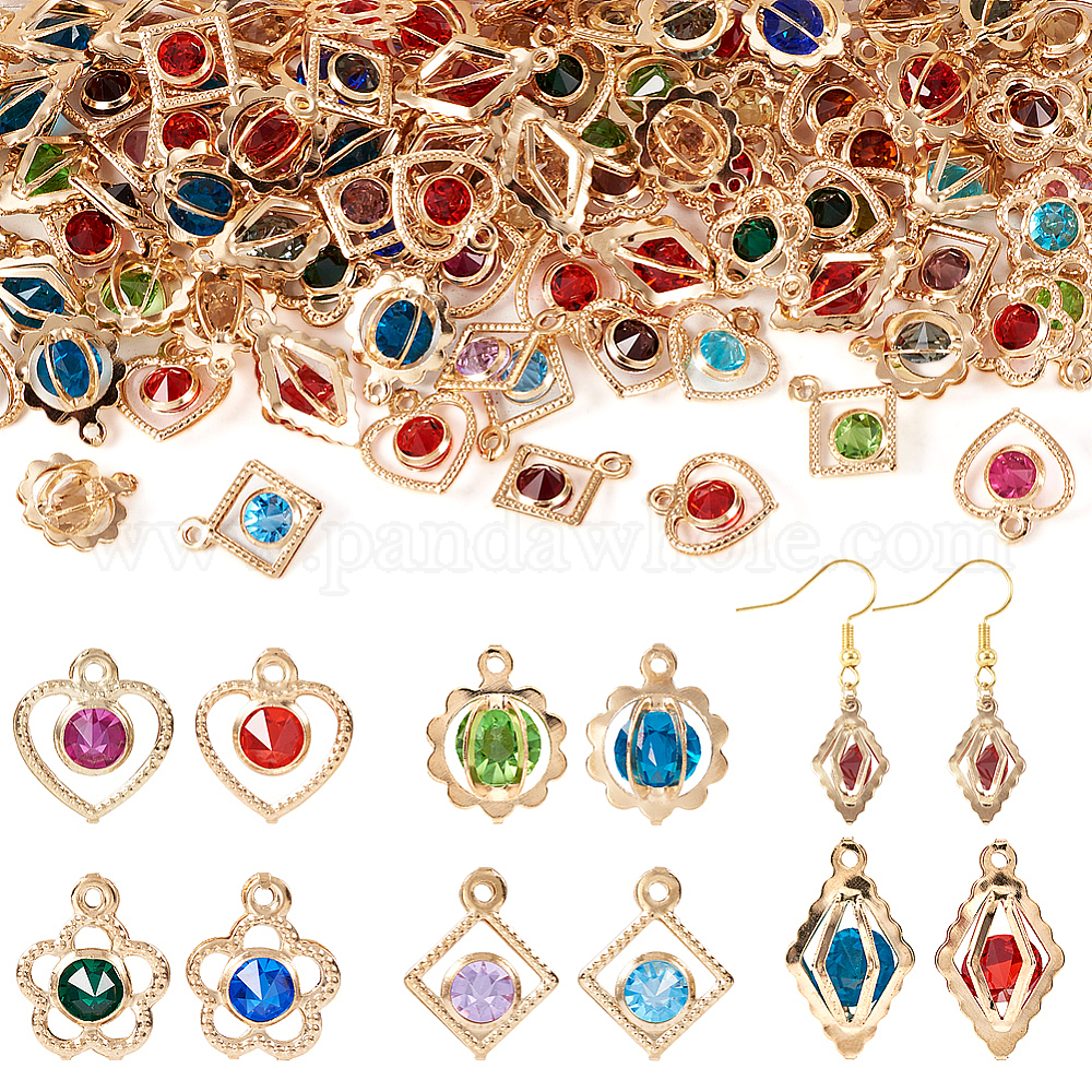 100шт 5 стили покрытия стойки экологически чистые железные подвески, со стразами, сердце и ромб и цветок и круг, золотой свет