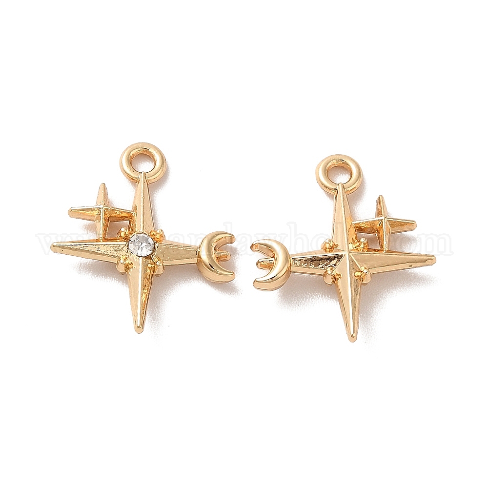 • Золотой Панданы из сплава со стразами и кристаллами, без никеля , звезда с лунными чарами, золотые, 17x14.5x3.5 мм, отверстие : 1.6 мм