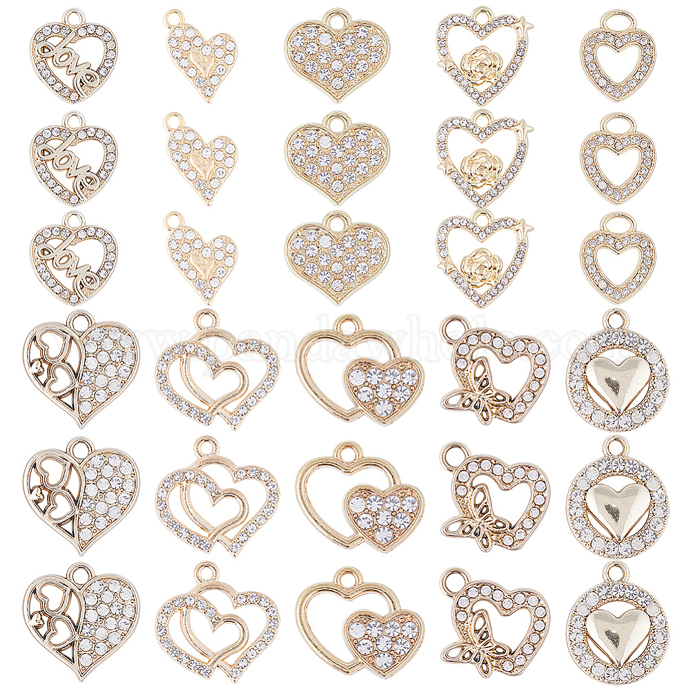 40шт 10 кулон из сплава с кристаллами и стразами, сердце и плоские круглые подвески