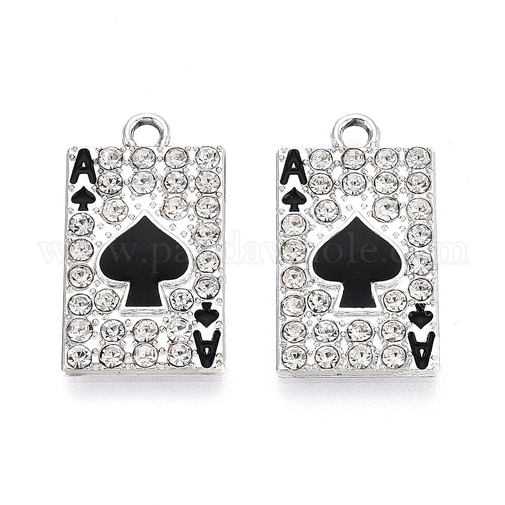 Подвески из сплава с кристаллами и стразами, с черной эмалью, прелести игральных карт