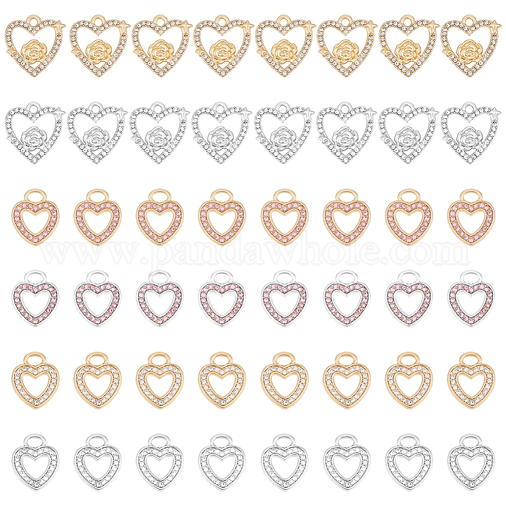 48шт 6 стильные стразы-подвески, с реечными выводами из сплава, без никеля , сердце прелести
