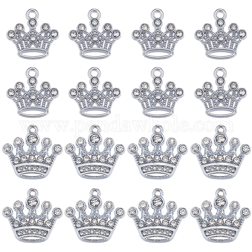 • Платина 40шт 2 стиль цинковый сплав с подвесками из хрустальных страз, корона прелести, платина, 18.5~20x18.5~21x2 мм, отверстие : 1.6~2 мм, 20 шт / стиль