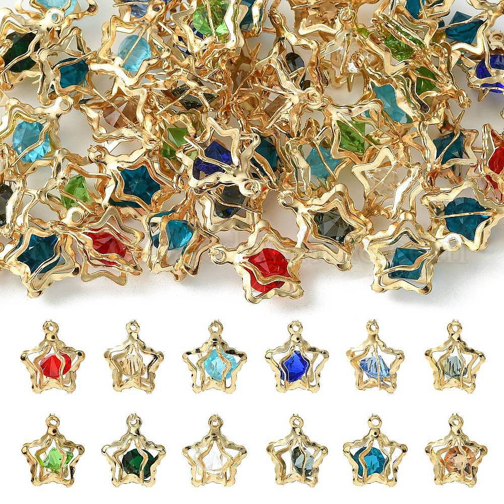 50Железные подвески для стойки, со стразами, без кадмия, без никеля и без свинца, золотые, звезды прелести