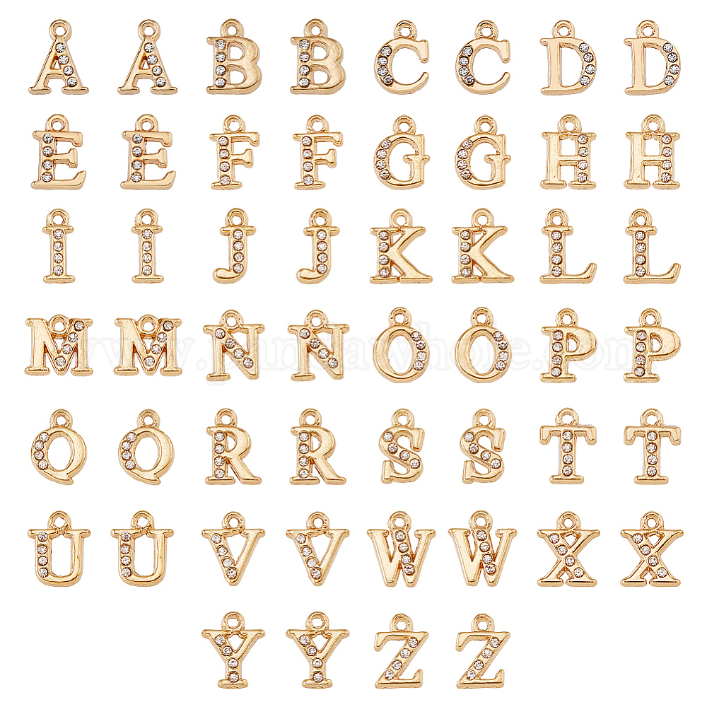 • Light Gold 2 наборы подвесок из сплава со стразами, алфавит, Письмо ~ Z, кристалл, золотой свет, 12.5~13.5x5.5~12x2.5 мм, отверстие : 1.4 мм, 26 шт / комплект
