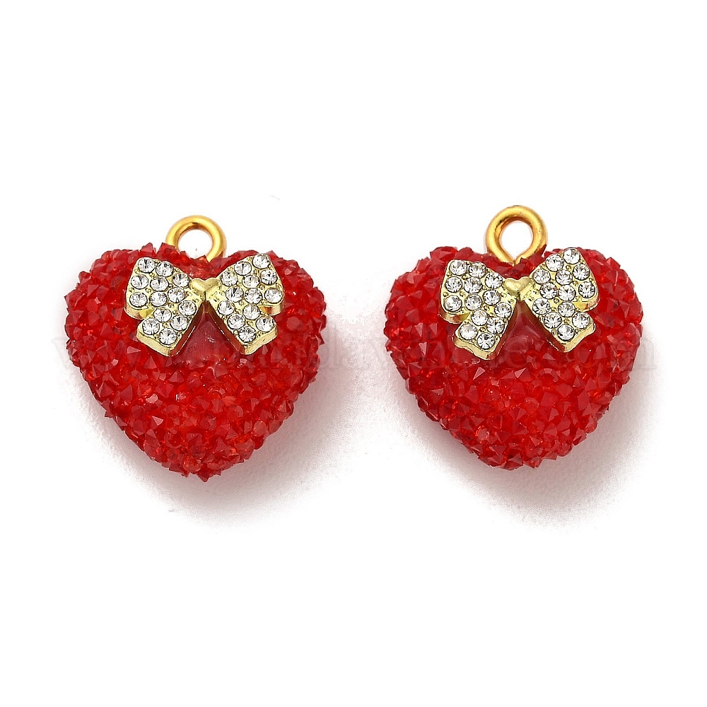 • Красный Подвеска в форме сердца из смолы и стразов в форме банта, с реечной накладкой из позолоченной латуни, долговечный, красные, 20.5x19~19.5x12 мм, отверстие : 2.5 мм