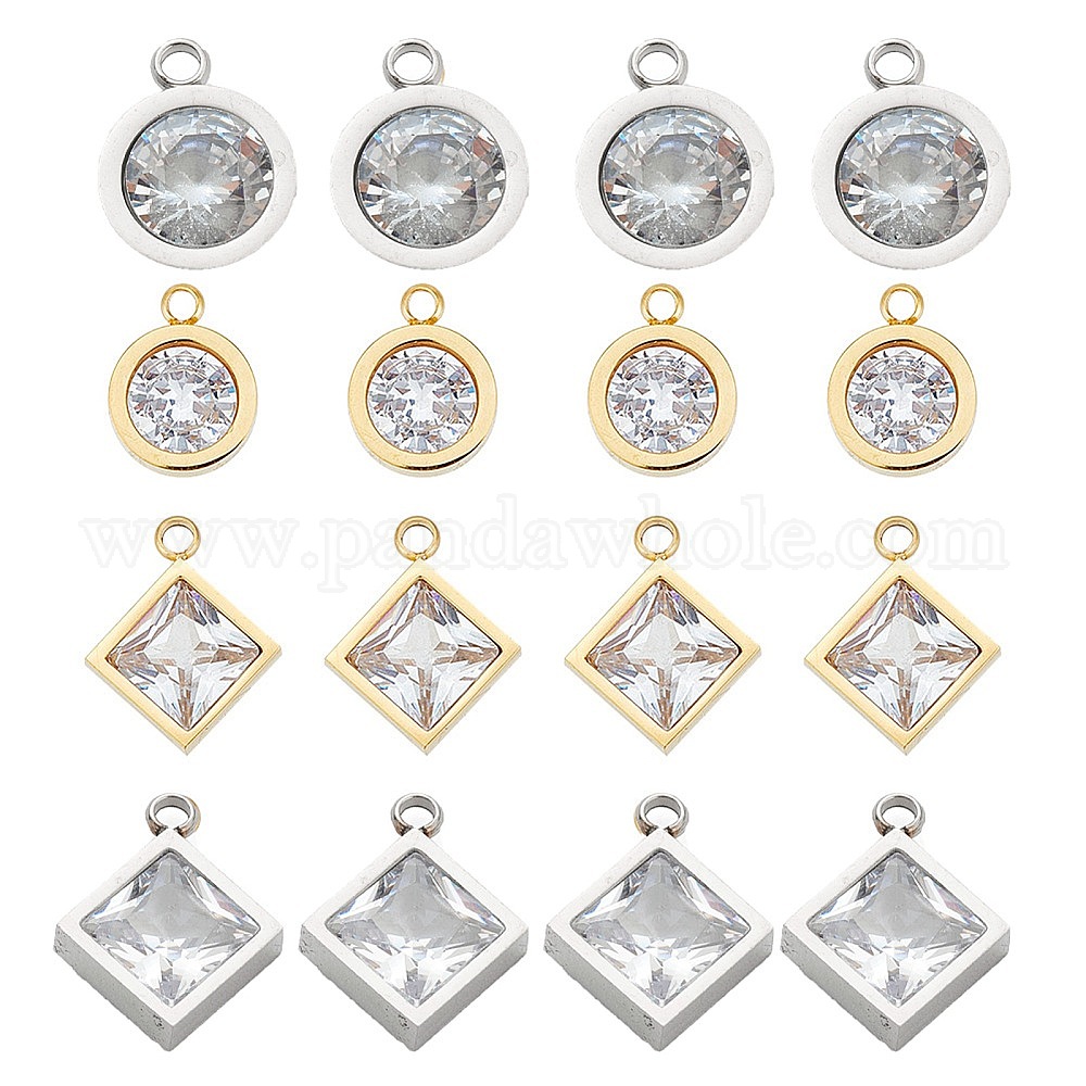 16 шт. 4 стиль 304 подвески из нержавеющей стали со стразами, плоский круглый и ромб