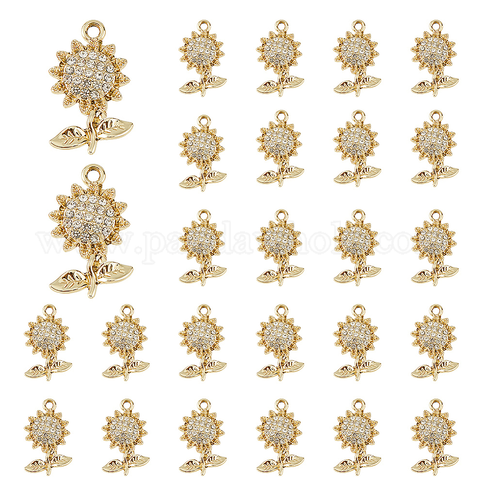 50шт. подвески из сплава со стразами с УФ-покрытием, прелести подсолнуха