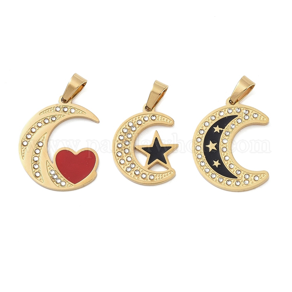 Ионное покрытие (ip) 304 подвески со стразами из эмали из нержавеющей стали, Луна прелести