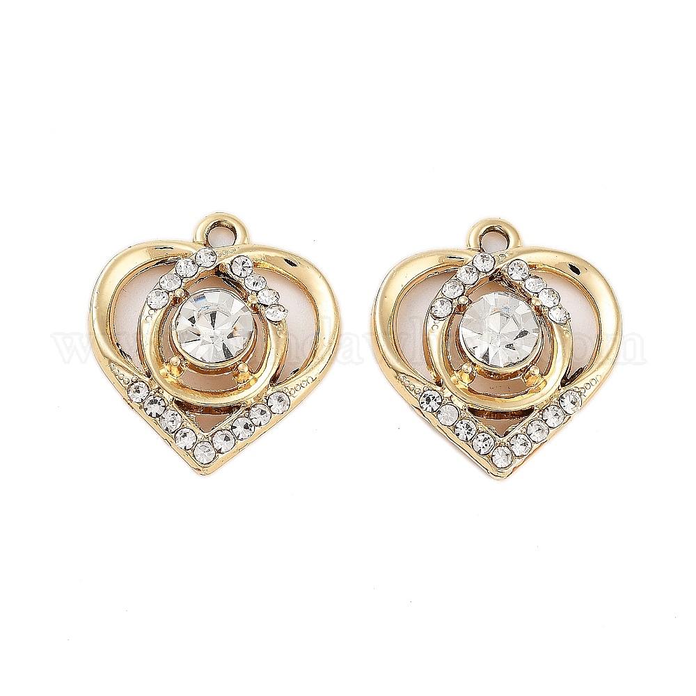 • Light Gold Подвески со стразами из сплава с УФ-покрытием, сердце прелести, золотой свет, 19x17.5x5 мм, отверстие : 1.8 мм