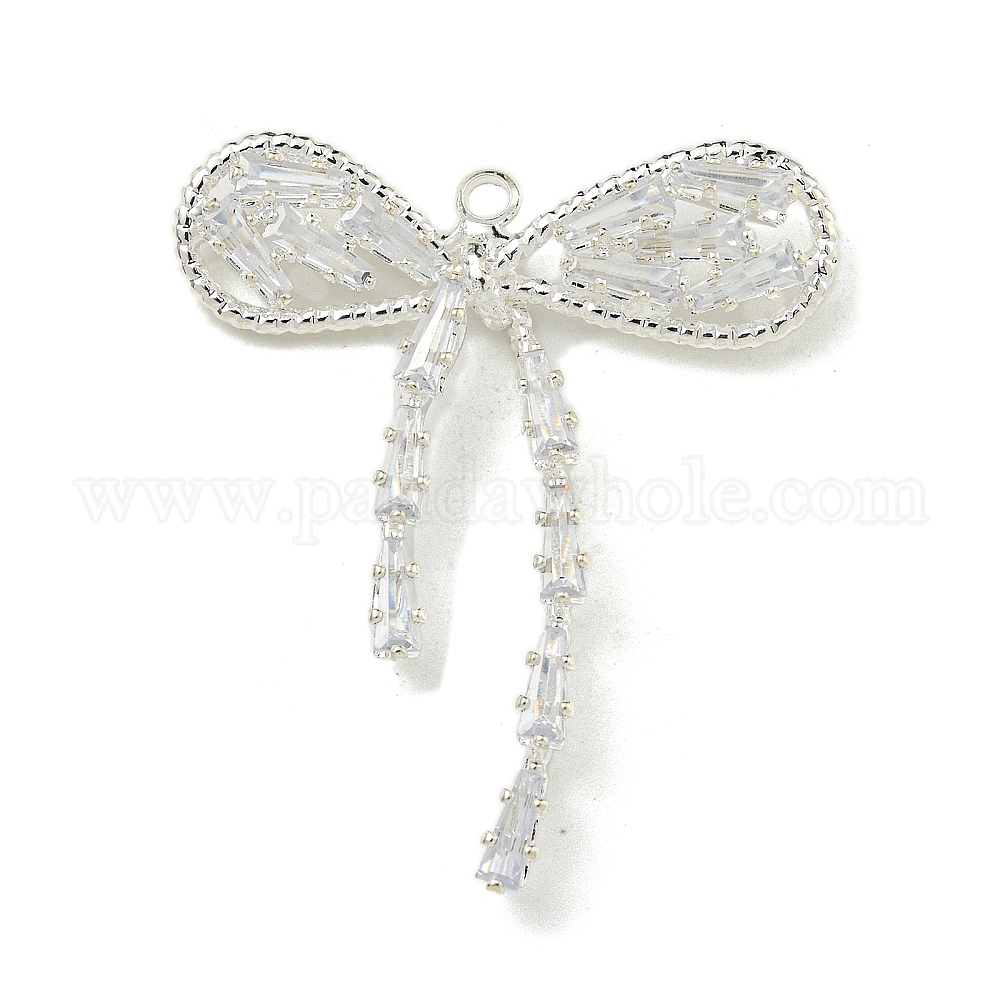 • Серебро Подвески латунные горный хрусталь, без кадмия и без свинца, бантом, серебряные, 33x29x6 мм, отверстие : 1.6 мм
