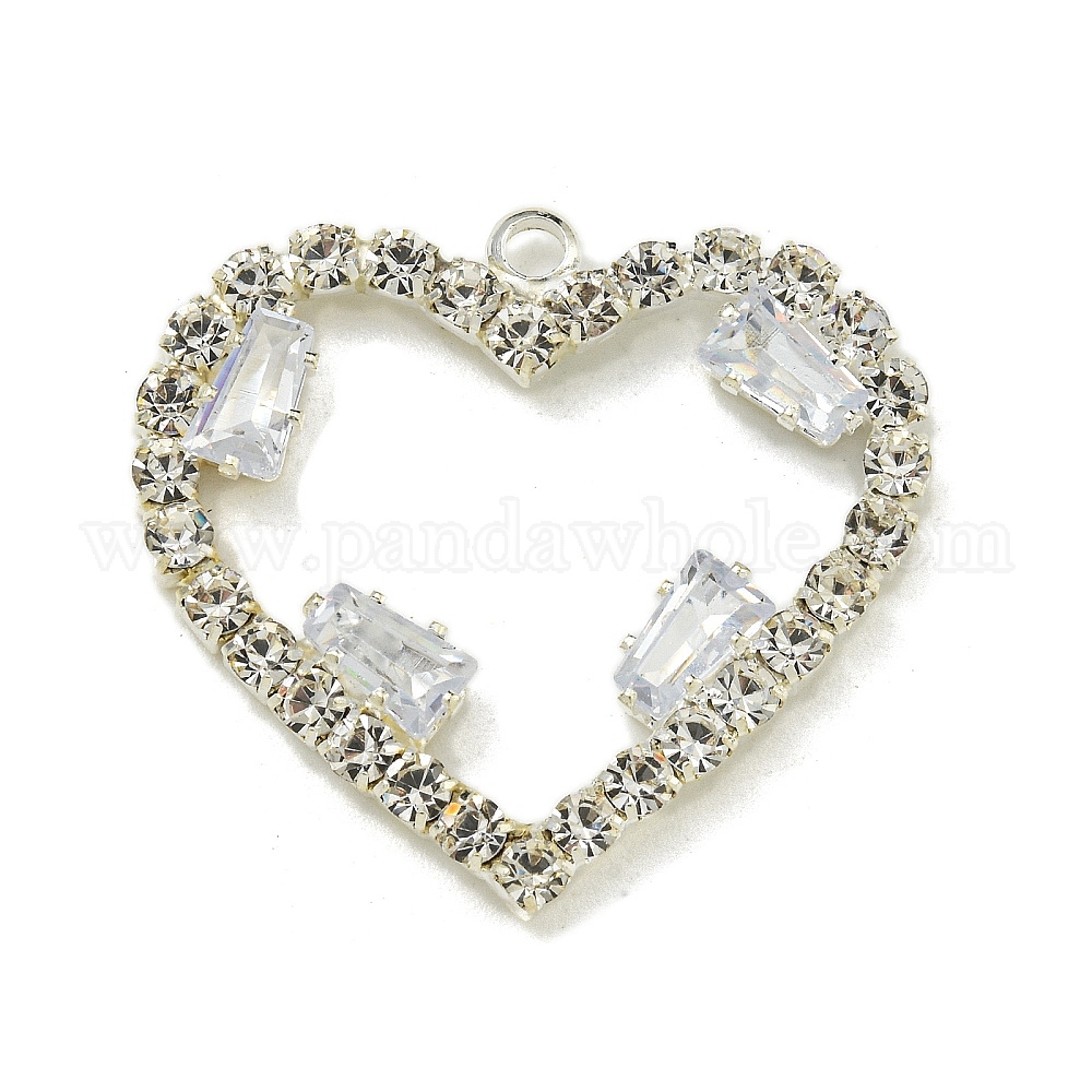 • Серебро Подвески латунные горный хрусталь, без кадмия и без свинца, сердце прелести, серебряные, 22.5x24.5x3 мм, отверстие : 1.5 мм