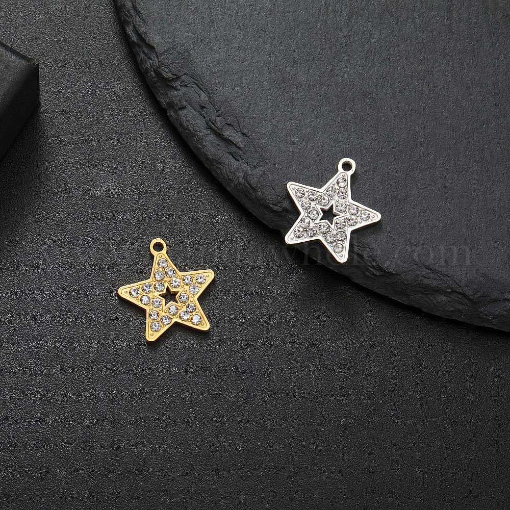 • Нержавеющая Сталь Цвет Шкентели нержавеющей стали, с кристально горный хрусталь, звезды прелести, цвет нержавеющей стали, 16x15 мм
