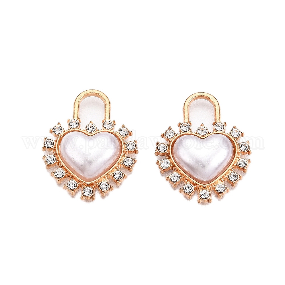 Подвески из сплава и страза, с ABS имитации жемчуга, без кадмия и без свинца, сердце прелести