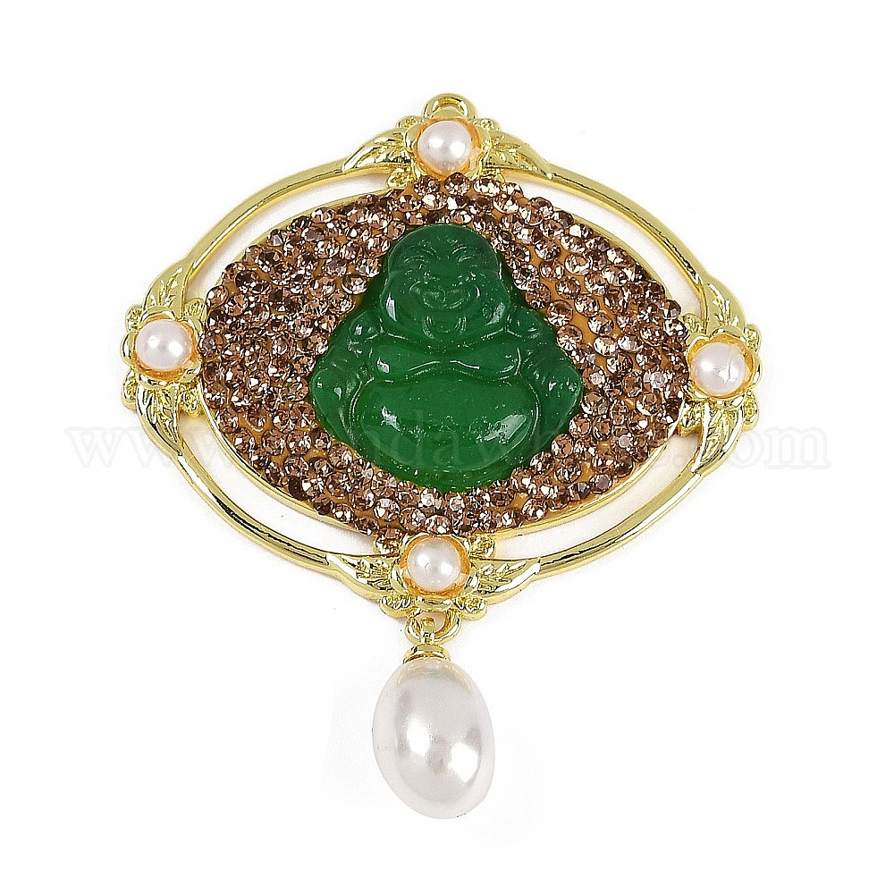 • Золотой Подвески латунные горный хрусталь, со стеклянными и пластиковыми бусинами из искусственного жемчуга, Майтрейя, золотые, 49.5x40.5x8 мм, отверстие : 1.4 мм
