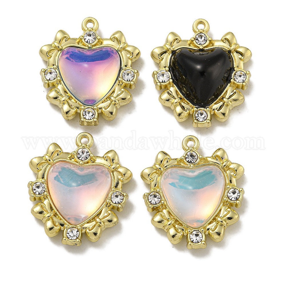 Стойки обшивки кулон сплава, со стразами и смолой, без свинца и без кадмия, сердце, золотые