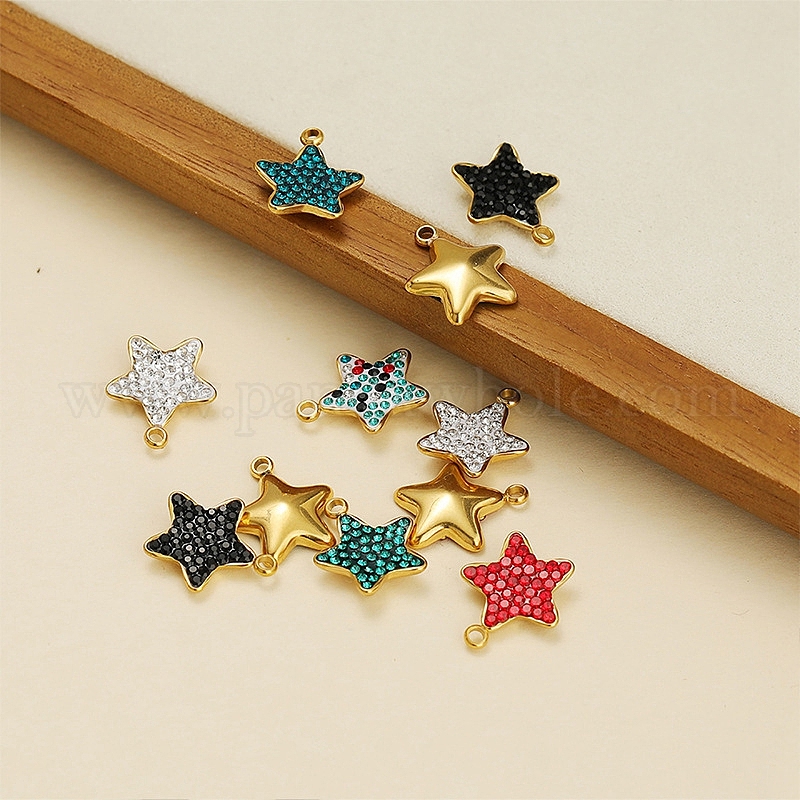Шкентели нержавеющей стали, со стразами, звезда очарование, золотые