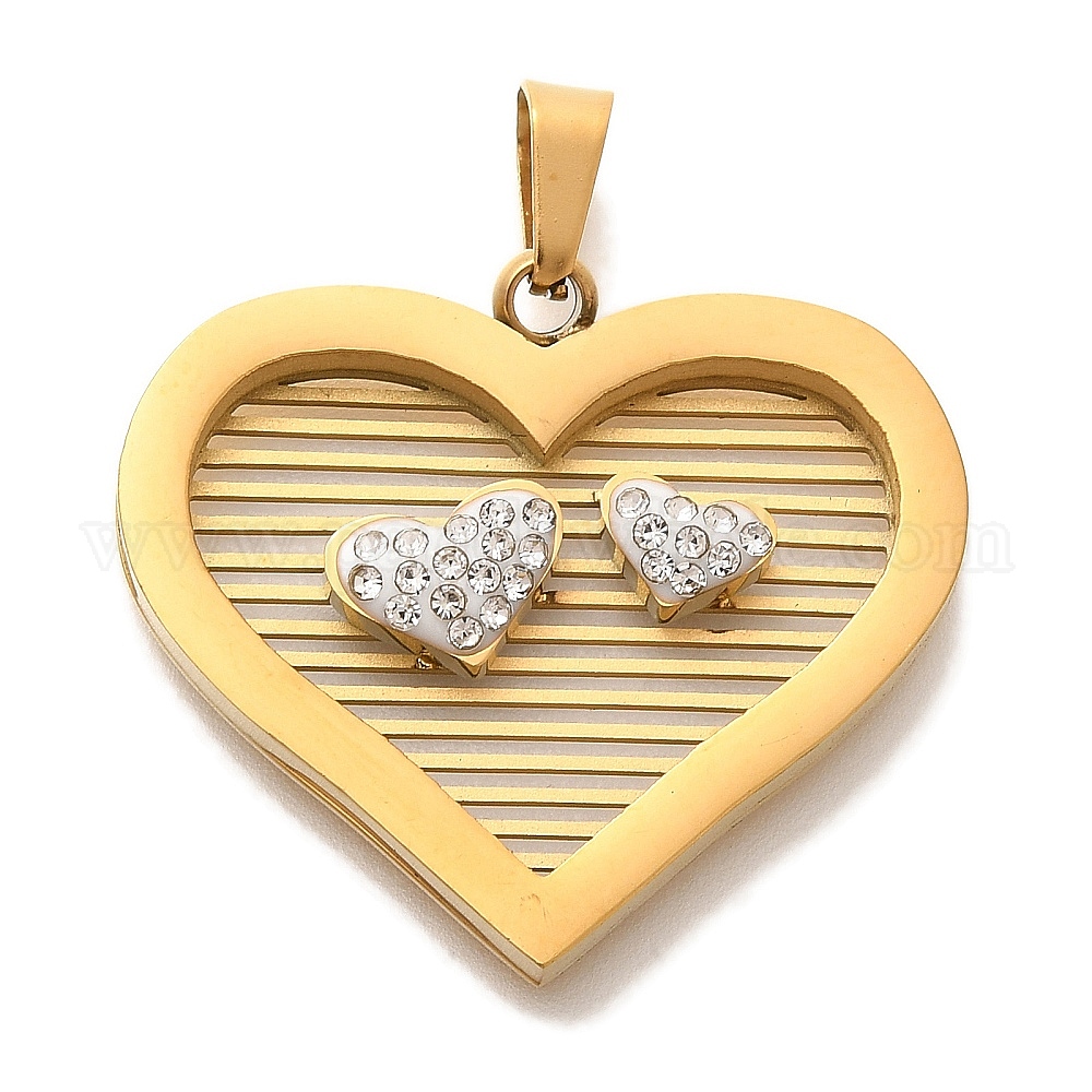 • Настоящее золото 18K Вакуумное покрытие pvd 304 подвески из нержавеющей стали, с полимерной глиной горный хрусталь, шарма сердца, реальный 18 k позолоченный, 24x27x4 мм, отверстие : 5.5x3 мм