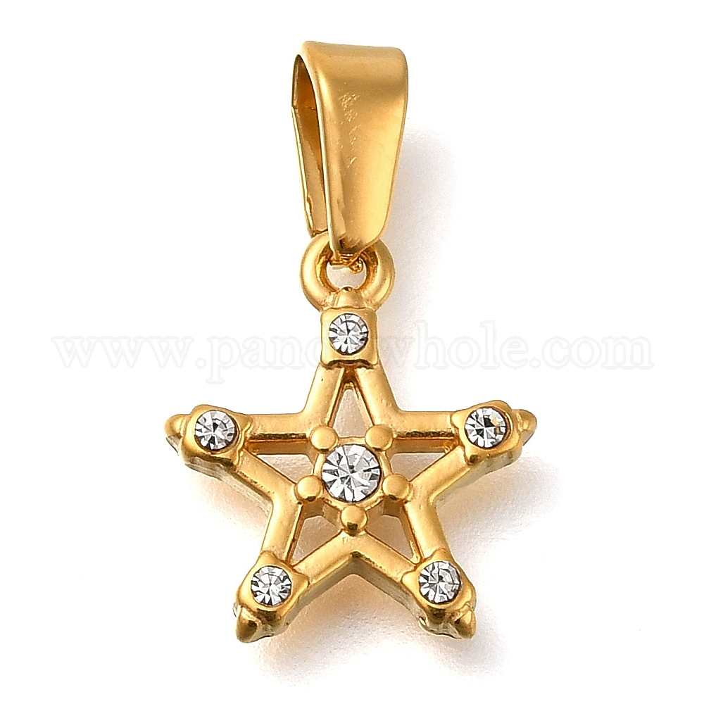 • Золотой Ионное покрытие (ip) 304 подвески из нержавеющей стали со стразами, форма звезды, золотые, 12.5x11x2.5 мм, отверстие : 5.5 мм