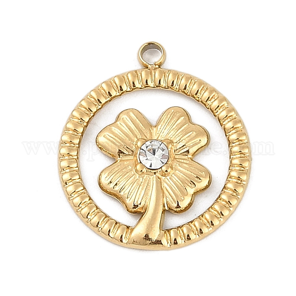 304 из нержавеющей стали горный хрусталь подвески, ионное покрытие (ip), плоский круглый с четырехлистным клевером