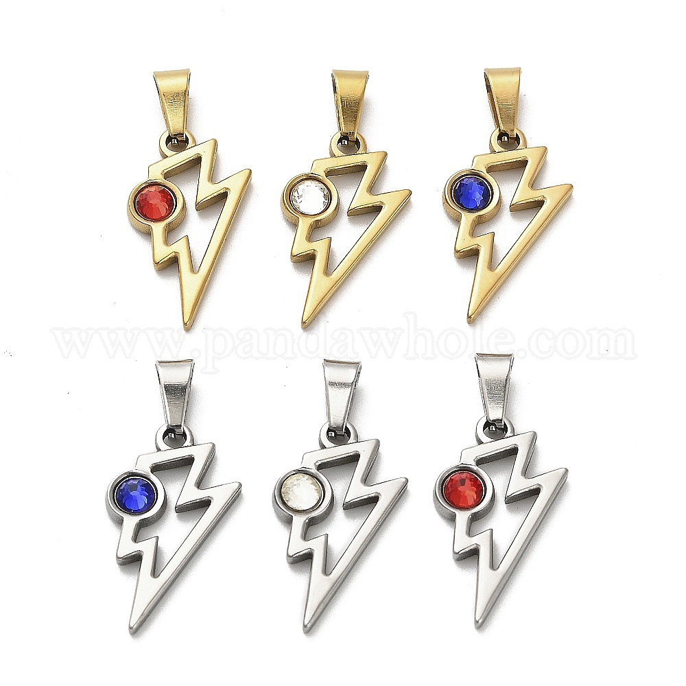 • Кристалл 304 подвески из нержавеющей стали, со стразами, ионное покрытие (ip), удар молнии, золотые, кристалл, 22x13.5x3 мм, отверстие : 7x3 мм
