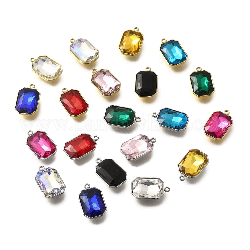 304 подвески из нержавеющей стали, со стразами, реальный 18 k позолоченный, ионное покрытие (ip), прямоугольные