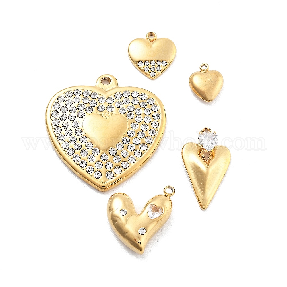 • Настоящее золото 18K 304 кулон из нержавеющей стали, со стразами, вакуумное покрытие pvd, сердце, реальный 18 k позолоченный, 26.5x25x3.5 мм, отверстие : 1.8 мм