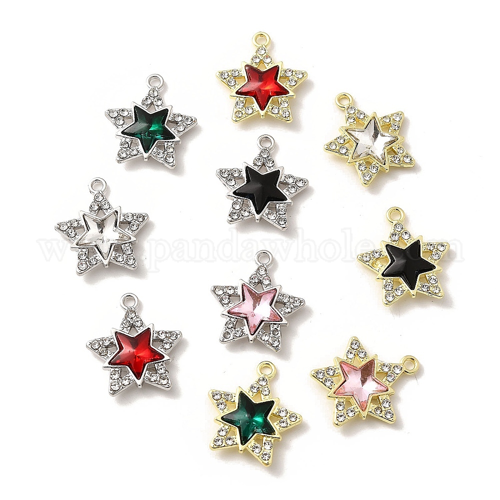 Подвески из сплава , с горным хрусталем и стеклом, без свинца, без кадмии и без никеля, стойки покрытие, звезда, разноцветные