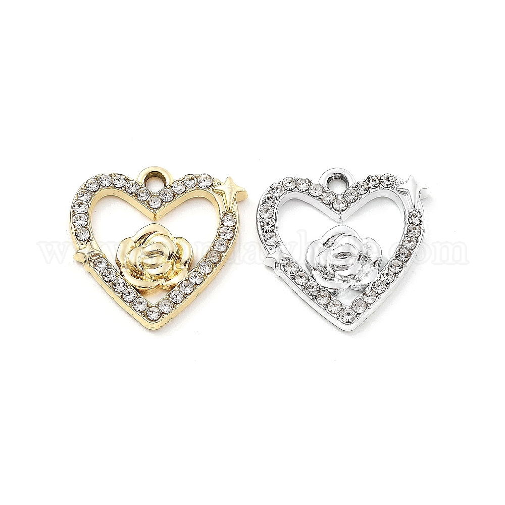 • Золотой Подвески из сплава и страза, УФ-покрытием, сердце, золотые, 18.5x19x2.5 мм, отверстие : 1.8 мм
