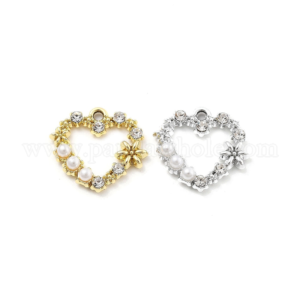 Подвески из сплава и страза, с пластмассовой жемчужиной abs, УФ-покрытием, сердце