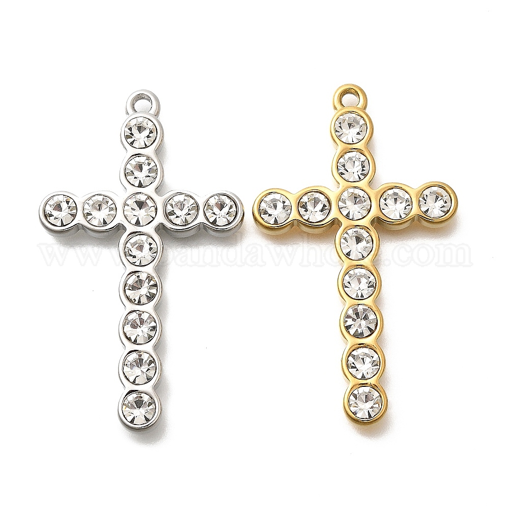 304 подвески из нержавеющей стали, со стразами, ионное покрытие (ip), крестик
