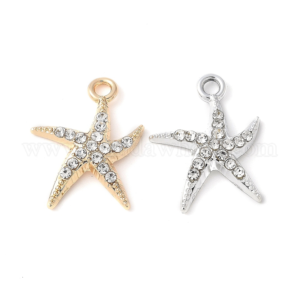 Сплава кристалла горный хрусталь подвески, стойки покрытие, без кадмия, без никеля и без свинца, морская звезда (0322S9)