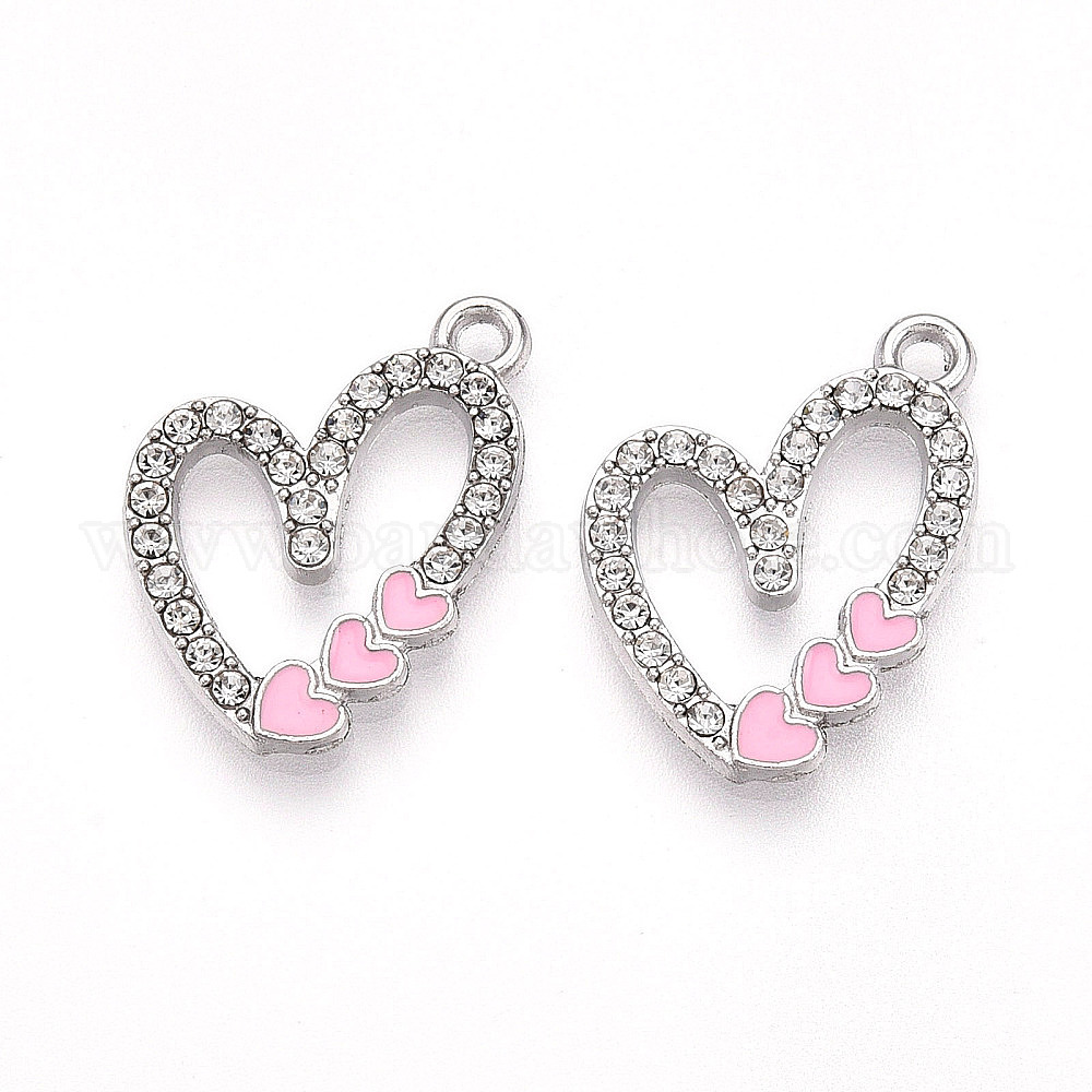 Подвески из сплава с прозрачными стразами и эмалью, сердце