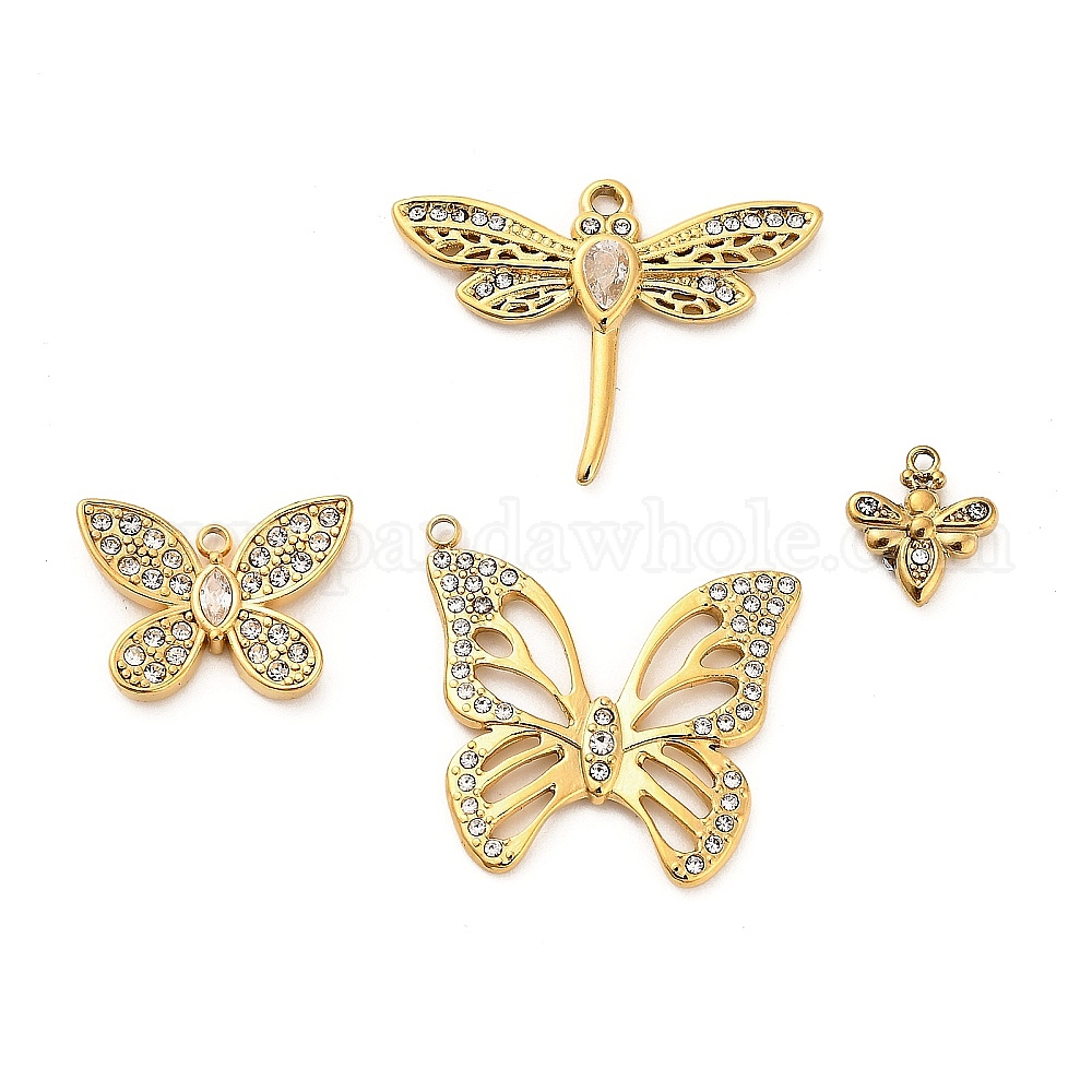 • Бабочка 304 из нержавеющей стали Кристалл Rhinestone подвески, реальный 18 k позолоченный, бабочка, 24x25.5x2 мм, отверстие : 1.5 мм