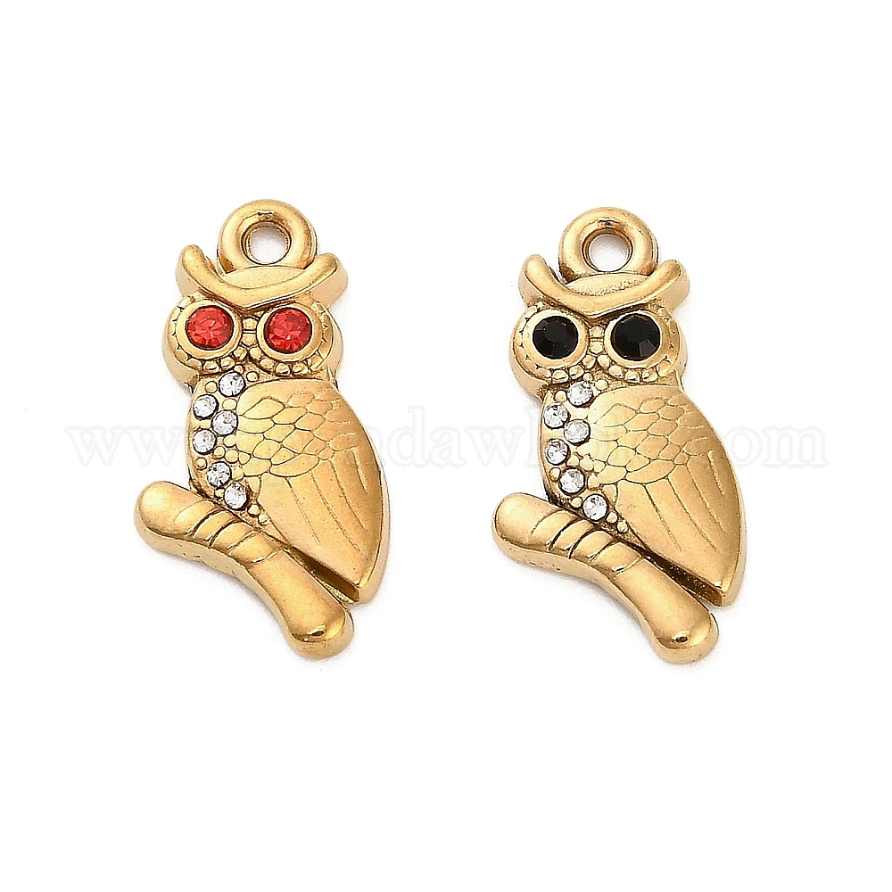 304 кулон из нержавеющей стали со стразами., ионное покрытие (ip), сова прелести, реальный 18 k позолоченный
