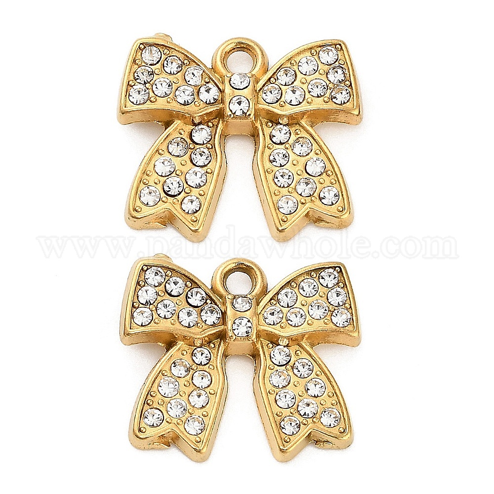 304 кулон из нержавеющей стали со стразами., ионное покрытие (ip), бантом прелести