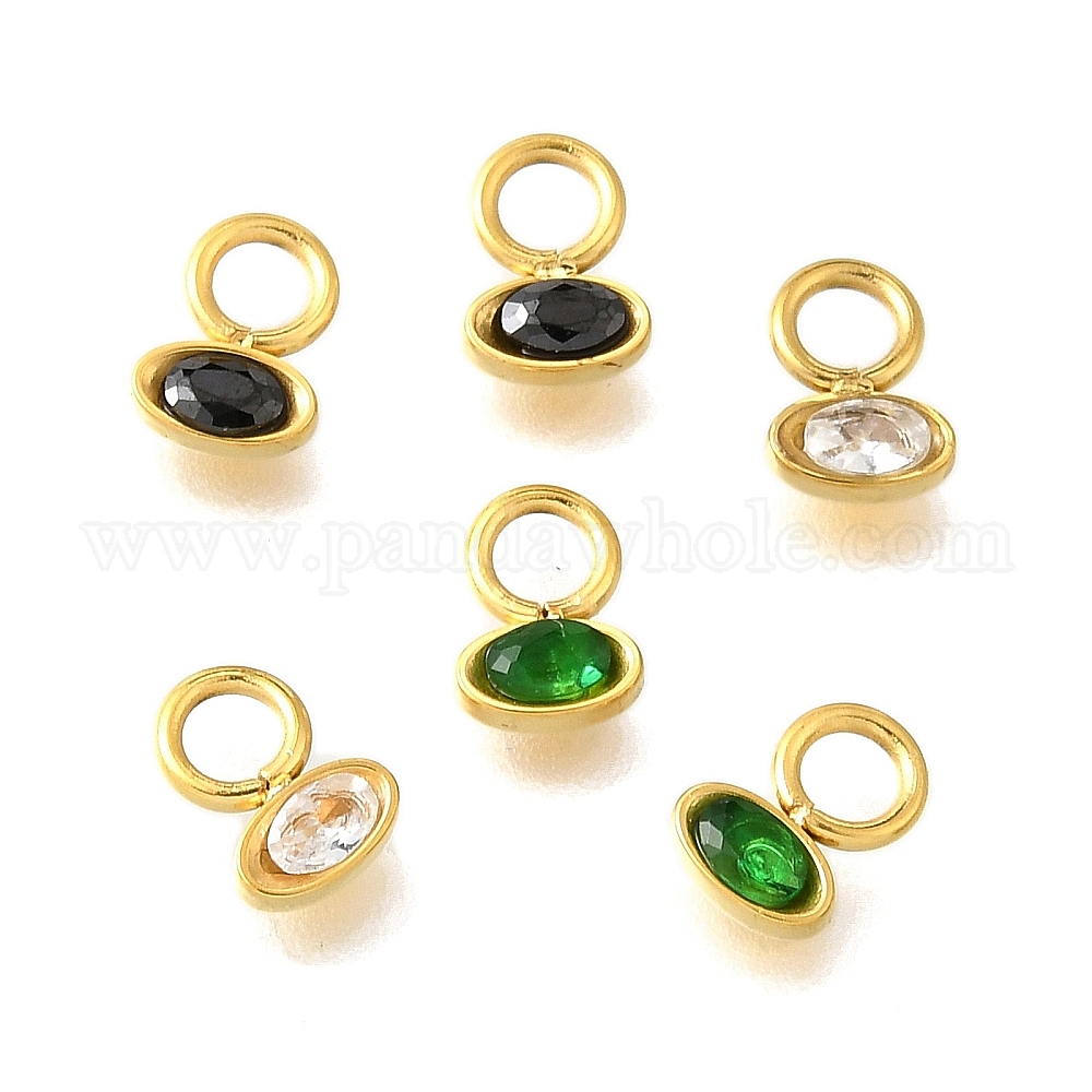 304 подвески из нержавеющей стали с микропаве из стразов, овальный шарм, реальный 14 k позолоченный, ионное покрытие (ip)