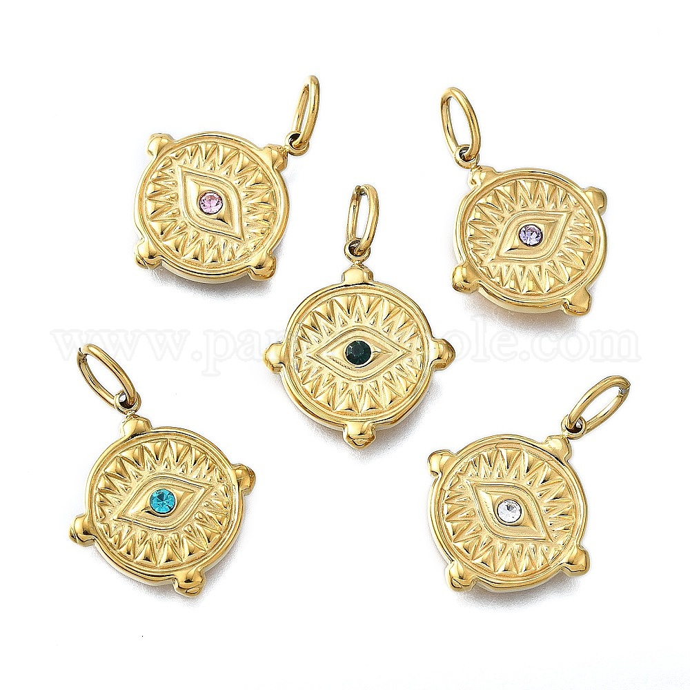304 кулон из нержавеющей стали, ионное покрытие (ip), со стразами, злые глаза, реальный 14 k позолоченный