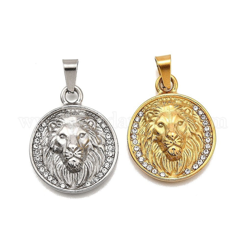 304 подвески из нержавеющей стали, со стразами, плоский круг и лев, вакуумные покрытия