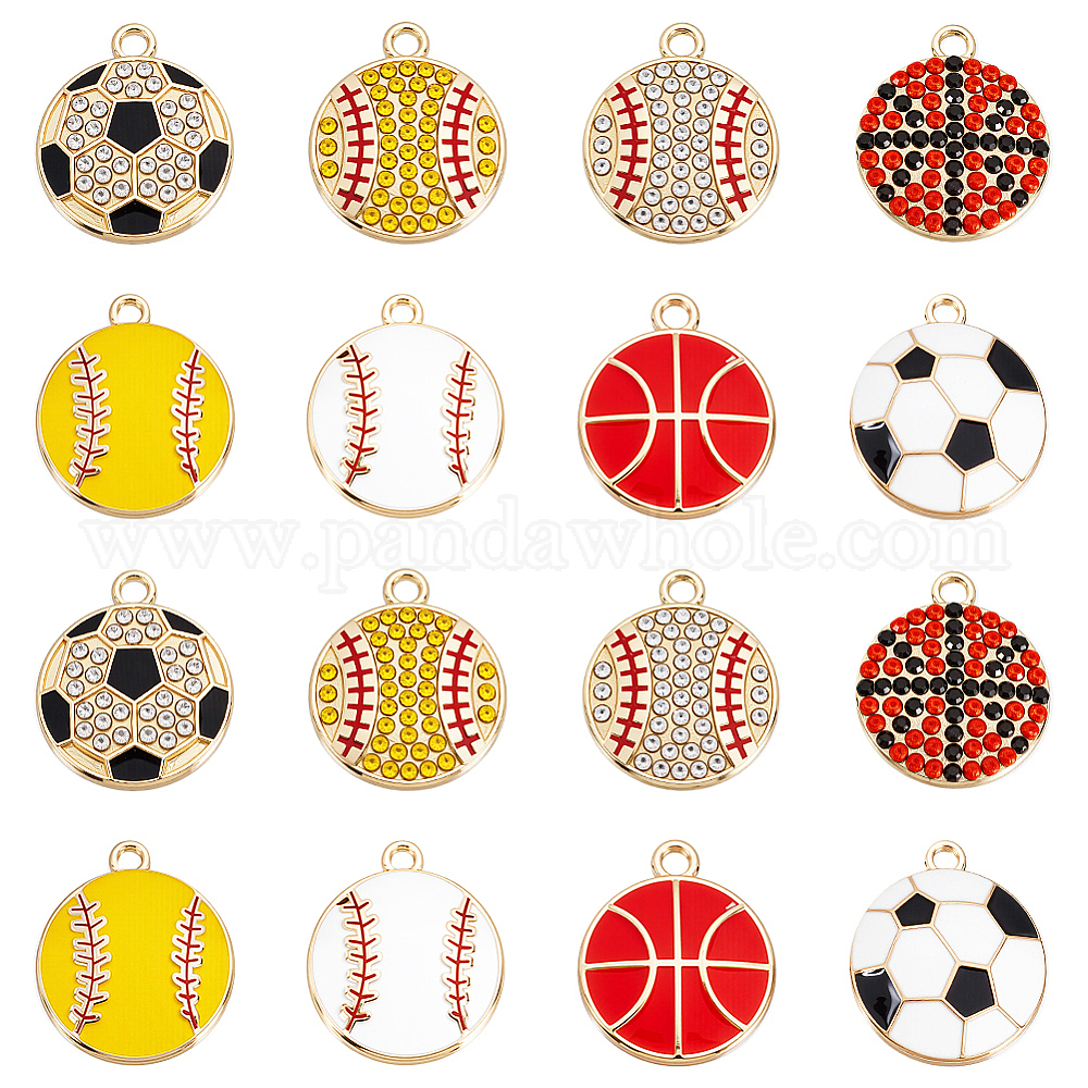 32 шт 8 стили подвески из сплава эмали, со стразами, без свинца, без кадмии и без никеля, спортивная тема