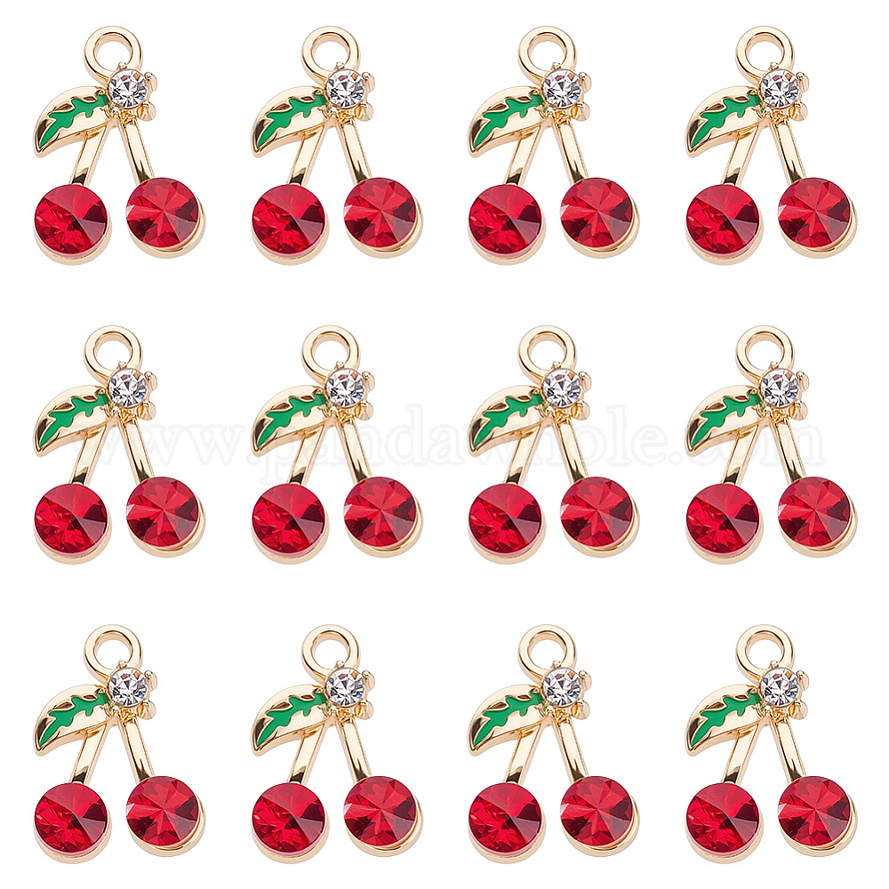 50подвески со стразами из сплава, с эмалью, золотой свет, вишня